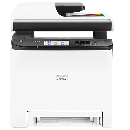 Maximisez votre espace et votre budget grâce à l’imprimante multifonction (MFP) couleur laser M C250FW de Ricoh, un appareil de bureau compact et abordable conçu spécifiquement pour les petits bureaux ou les groupes de travail d’aujourd’hui, où les activités se déroulent à un rythme rapide. Imprimez, copiez, numérisez et envoyez par télécopieur des documents à des vitesses productives et avec peu d’entretien à partir du bureau, d’un comptoir de détail, d’une aire de réception ou d’autres emplacements où l’espace est limité.